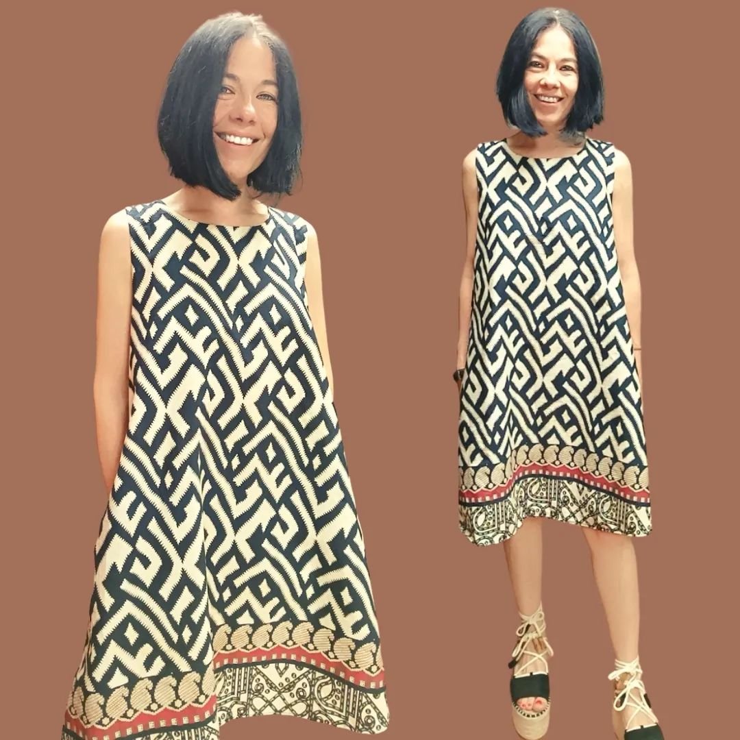Este diseño transforma la primavera en lenguaje visual. El patrón geométrico en blanco y negro crea ritmo y estructura, mientras el borde decorativo con círculos y la línea roja añaden tensión emocional y gesto sofisticado. La silueta sin mangas y el largo medio permiten ligereza al caminar. Una pieza pensada para mujeres que visten desde la estética: seguras, singulares, con arte impreso sobre tela. Primavera, aquí, es una exposición silenciosa.